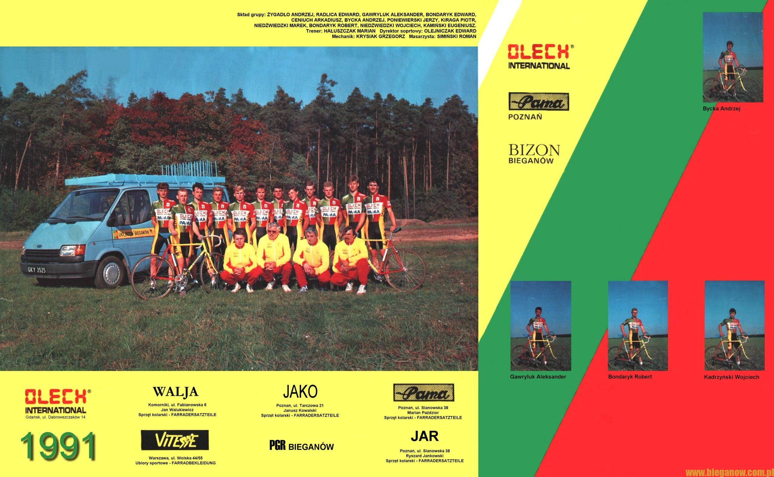 W październiku 1990 roku w Bieganowie powstała 12 osobowa Grupa Kolarska „OLECH-PAMA-BIZON” Bieganów, prowadzona przez Edwarda Olejniczaka i Mariana Hałuszczaka. Była to pierwsza w Polsce zawodowa grupa przełajowa. 12 października 1990 roku odbyła się oficjalna prezentacja Grupy Kolarskiej „OLECH-PAMA-BIZON” Bieganów, z udziałem prezesa Rady Głównej LZS Wacława Hurko.