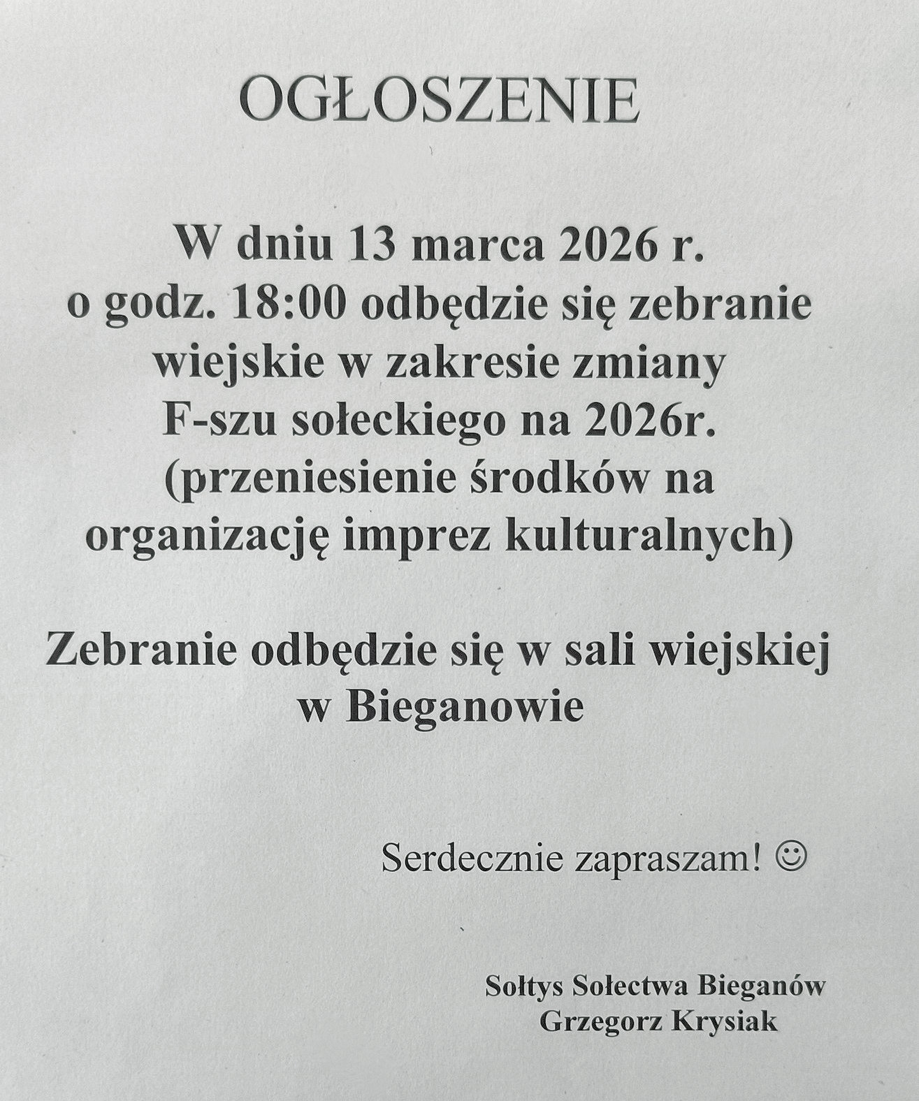 Sołtys zaprasza na spotkanie odnośnie zmiany Funduszu Sołeckiego. Szczegóły na plakacie. >>>kliknij<<<